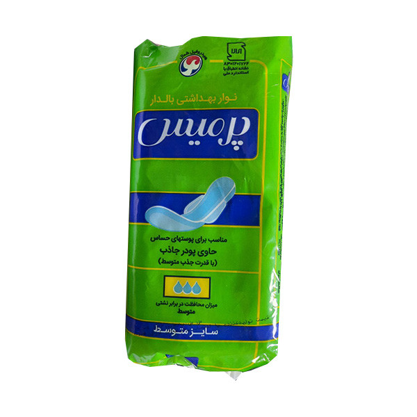 نوار بهداشتی بالدار پرمیس ، مناسب برای پوست های حساس و حاوی پودر جاذب می باشد .
