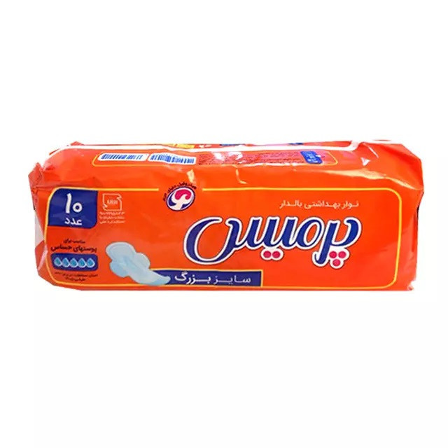 نوار بهداشتی پرمیس بالدار مناسب پوست های حساس سایز لارج دارای قدرت جذب خیلی زیاد بسته 10 عددی هیدروفیل شمال دارای سیب سلامت و نشان استاندارد با بهترین کیفیت و مرغوب ترین قیمت