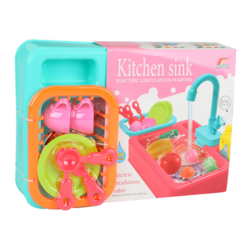 سینک ظرفشویی یک اسباب بازی مهیج و سرگرم کننده است که کودک با شستشوی ظروف و میوه ها حس خوبی را تجربه می کند. با ریختن آب داخل سینک و چرخاندن شیر آب، پمپ آب که توسط دو عدد باطری قلمی تغذیه می شود روشن شده و آب را از دهانه شیر آب سرازیر می کند و کودک می تواند با قرار دادن ظروف و میوهجات که داخل بسته بندی قرار دارد ، شروع به شستن آنها کند. این محصول یک هدیه جذاب و جدید برای کودکان شماست خرید این محصول را به شما پیشنهاد می کنیم