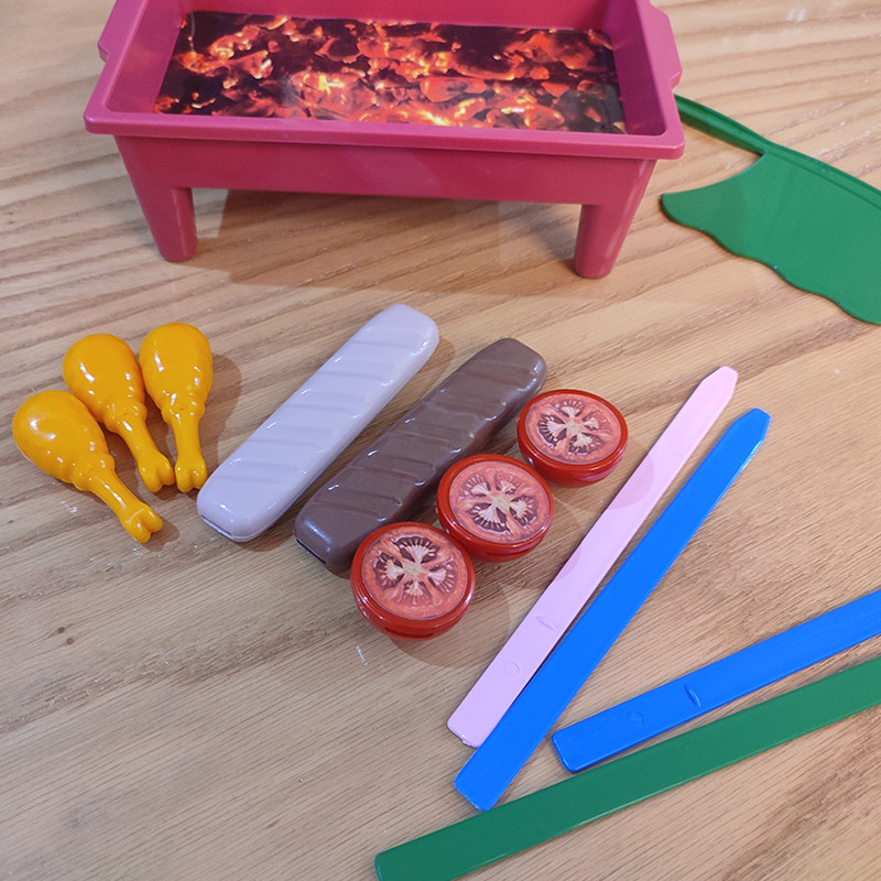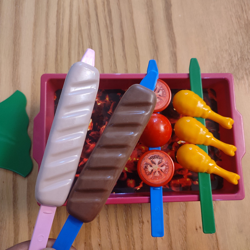 کودک شما می تواند گوجه فرنگی ها و کباب ها را به سیخ بکشد و با بادبزن آنها را باد بزند.