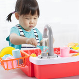 خلاصه روش بازی : سینک ظرفشویی با عملکرد واقعی قابلیت ریزش آب میباشد که برای کودکان بسیار جذاب است، آب به صورت چرخشی می باشد. در این مجموعه یک مخزن آب وجود دارد که وسایل مانند سینک روی آن قرار میگیرد و با ریختن آب درون سینک به مخزن مجدد برمیگردد. (حالت چرخشی دارد)
