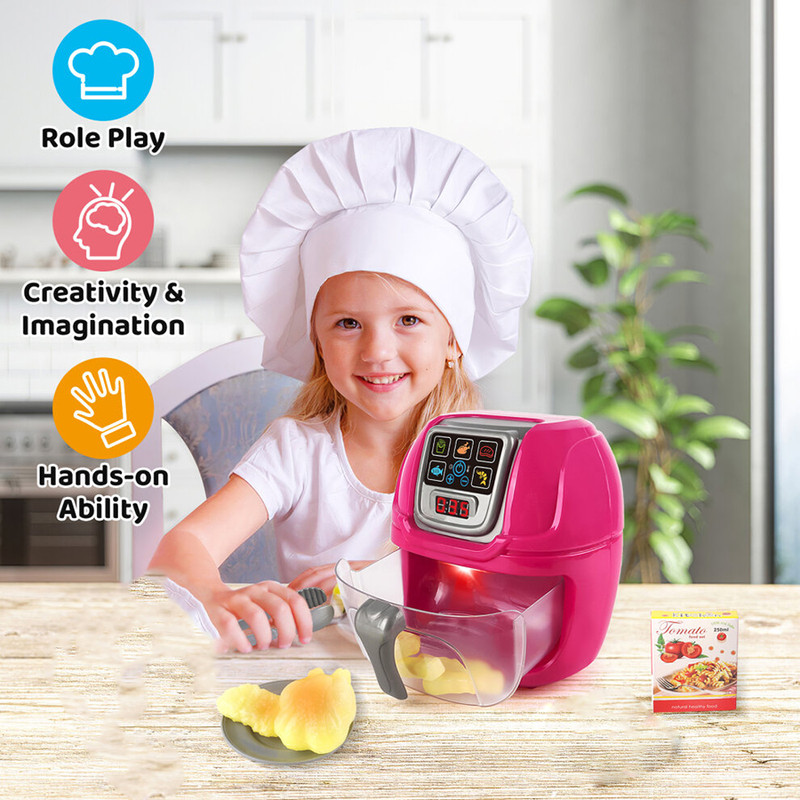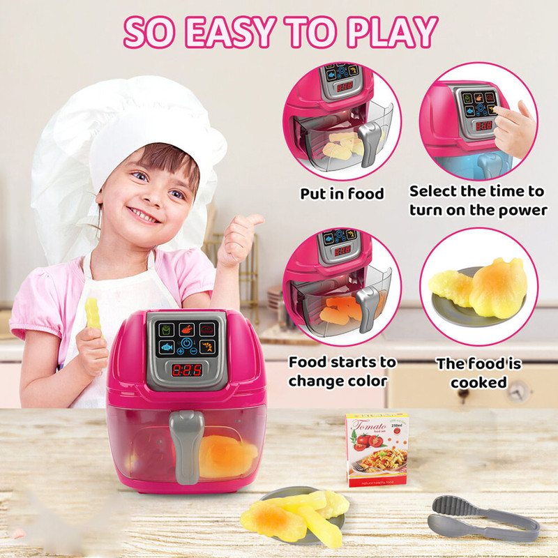اجازه دهید کودکانتان دنیای آشپزی را با این ست آشپزخانه سرگرم کننده شبیه سازی کودکان کشف کنند! با عملکردهای واقعی، صفحه نمایش روشن و جلوه های صوتی، این اسباب بازی سرخ کن فر تضمینی برای ساعت ها سرگرمی است. بچه ها می توانند تجربه لمسی پخت را با یک حسگر هوشمند کشف کنند و شاهد تغییر رنگ مواد واقعی باشند.این اسباببازی سرخکن وانمود میکند که تجربه بازی سرگرمکنندهای را برای بچهها فراهم میکند، غذای تغییر رنگ، دکمههای کاربردی و چراغ های زیبایی دارد. چند منظوره است، انواع زمان پخت غذا را شبیه سازی می کند و تعداد زمان را نمایش می دهد.این یک اسباببازی سرخکن شبیهسازی شده است که کودکان اجازه میدهد تا تغییر رنگ مواد را هنگام پخت مشاهده کنند و در فرآیند بازی به شناخت غذا و تعامل اجتماعی دست یابند. وقتی فر با غذا خارج می شود، تایمر زمان بندی را متوقف می کند.