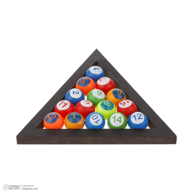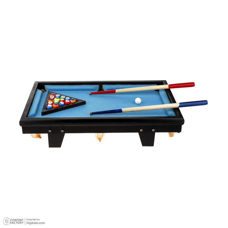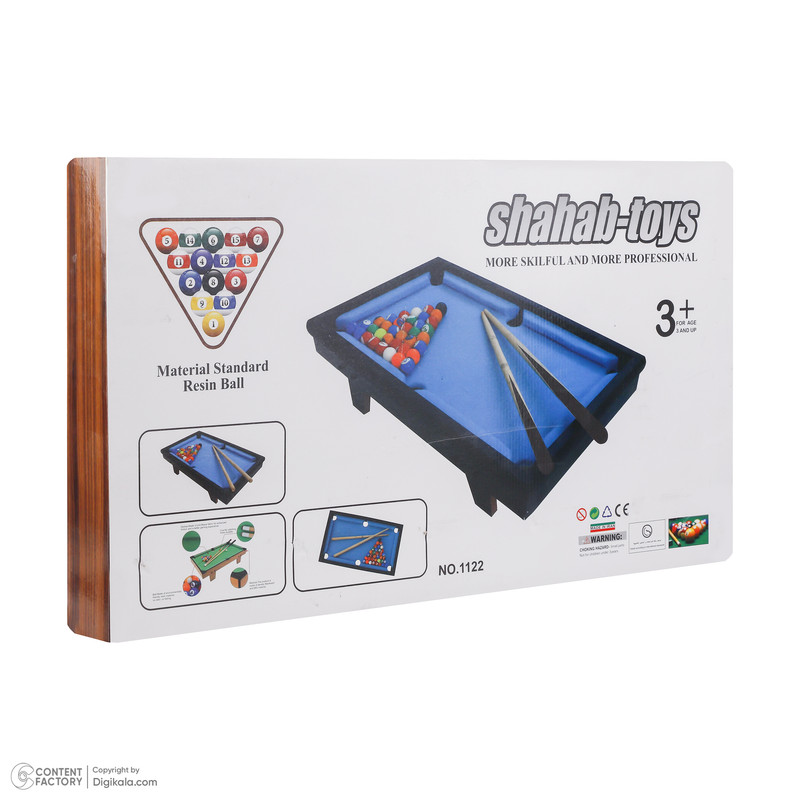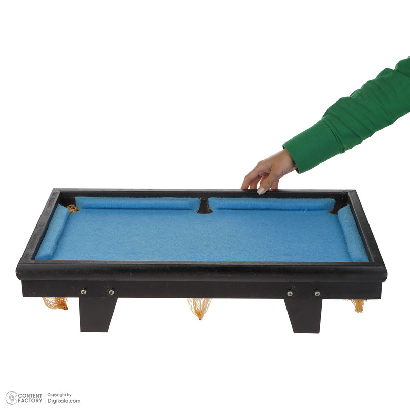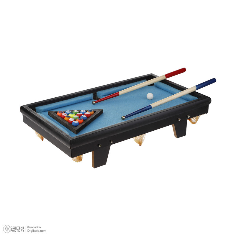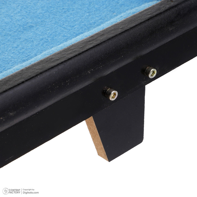 - پارچه کف نمد - جنس توپ پلاستيک فشرده وتوپر و شمارهدار - داراي پايه هاي تراز با ارتفاع 9 سانت - جنس بدنه م دي آف 16ميل مشکي - سپر چيدمان چوبي
