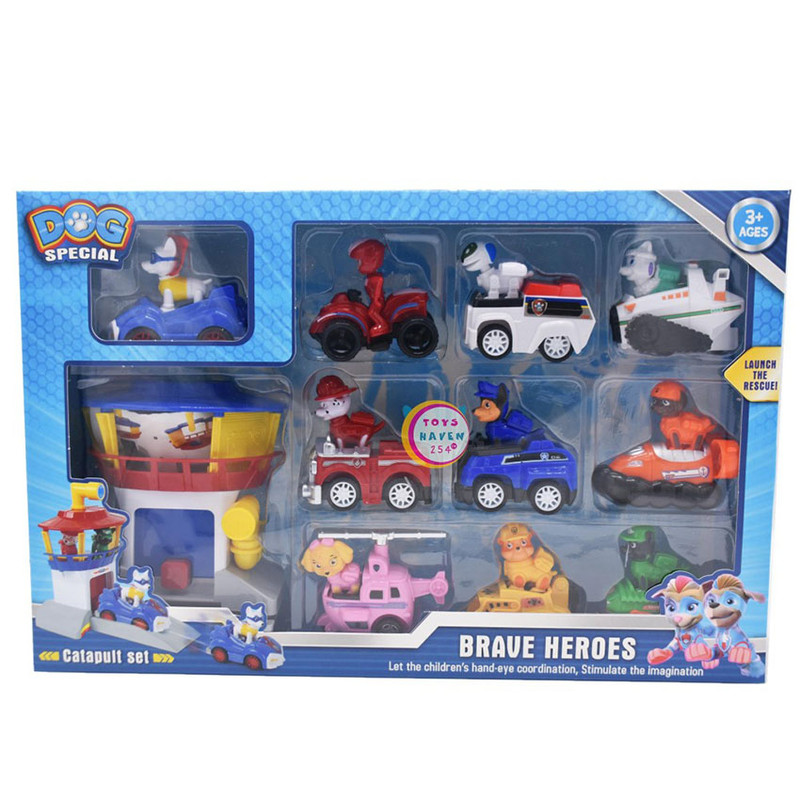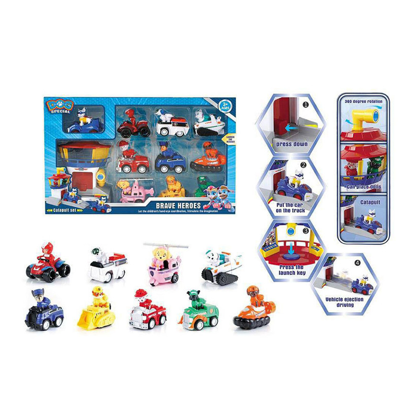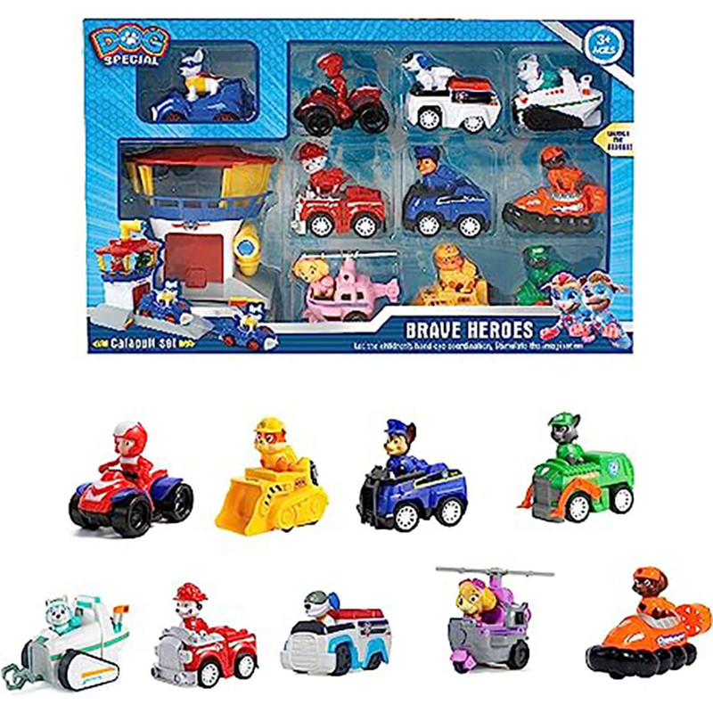 مجموعه فیگورهای گشت ویژه شامل چیس، مارشال، راکی، رابل، زوما و اسکای است.ماشین های این ست اسباب بازی به صورت عقب کش کار می کند یعنی با کشیدن آن به سمت عقب ماشین به سمت جلو حرکت می کند و نیازی به باتری ندارد.این اسباب بازی دارای شخصیت های سگ های نگهبان همراه با فرمانده رایدر و برج مراقبت است که این شخصیت ها و در مجموع این کارتون از انیمیشن های مورد علاقه کودکان می باشد. کودک با این کارتون کارهای تیمی و در خدمت تیم بودن را یاد می گیرد و داشتن یک اسباب بازی به زیبایی این ست سگ های نگهبان می تواند یاد و خاطره این انیمیشن را همواره در ذهن و جان کودک زنده نگاه دارد.این ست سگ های نگهبان زیبا دارای بسته بندی بسیار مناسبی است و به دلیل خاص بودن، بهترین هدیه برای بچه های دوستان و نزدیکان خصوصا دوستداران سگ های نگهبان خواهد بود.
