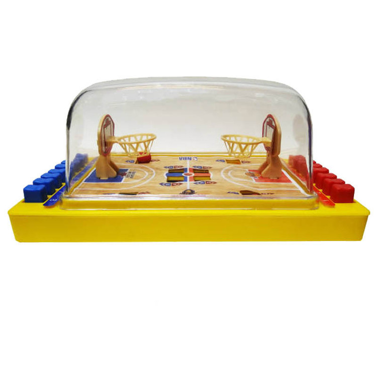این بازی برای دو نفر و چهار نفره طراحی شده است؛ با قرار دادن توپ مخصوص بر روی نقطه پرتابی وسط زمین و با فشار دادن دکمه های خارج از زمین بازیکنان می توانند بازی خود را شروع کنند. از دیگر ویژگی های این بازی دو عدد سبد توری بسکتبال می باشد که بازیکنان باید سعی در انداختن توپ در سبد حریف خود کنند. با تهیه این بازی کم جا و کوچک، می توانید یک بازی بسکتبال کوچک، زیبا و بسیار سرگرم کننده ای را برای کودک خود فراهم نمایید.