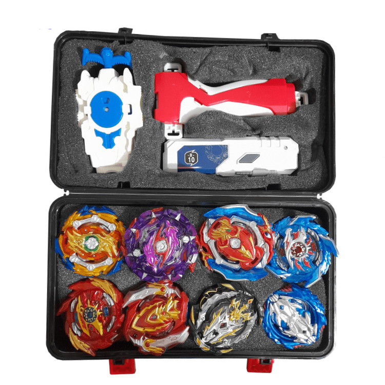 چمدان فرفره های انفجاری لوکس 12 عددی به همراه 3 لانچر و لیزر شامل 12 عدد فرفره انفجاری جذاب و خاص کیفیت ساخت بسیار بالا بهترین هدیه برای کودکان عاشق فرفره های انفجاری