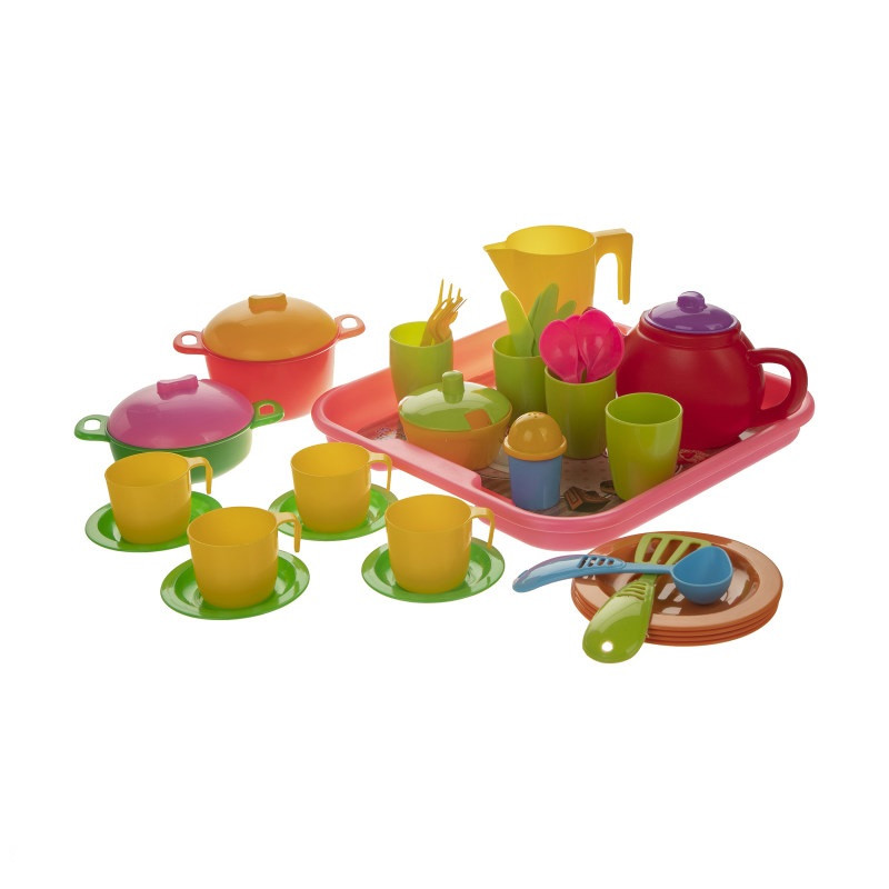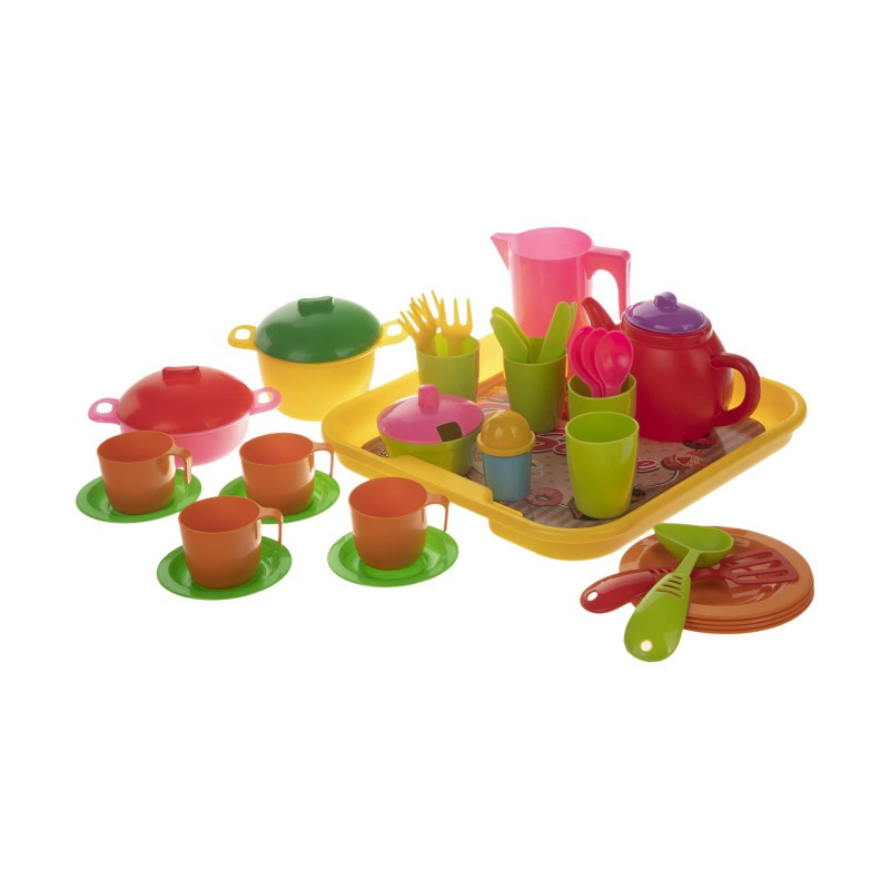 - داری پارچ آب - دارای قوری - دارای قابلمه - دارای تابه - دارای کفگیر و ملاقه - دارای قاشق و چنگال و کارد - دارای لیوان - دارای فنجان - دارای بشقاب - دارای پیش دستی - دارای نمکدان - دارای سینی