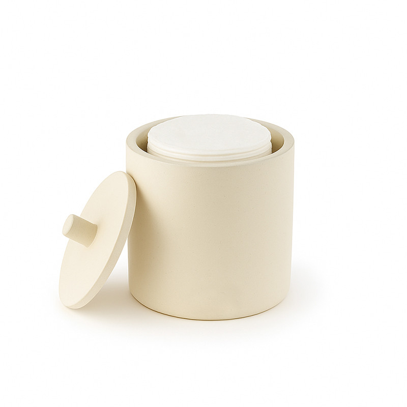 محصول مورد نظر به عنوان جای پد آرایشی در تنوع رنگی بالا، مناسب برای نگهداری پد های استاندارد آرایشی طراحی و ساخته شده است. در تولید این محصول از سنگ به عنوان ماده ی اصلی و رزین به عنوان روکش استفاد شده است.