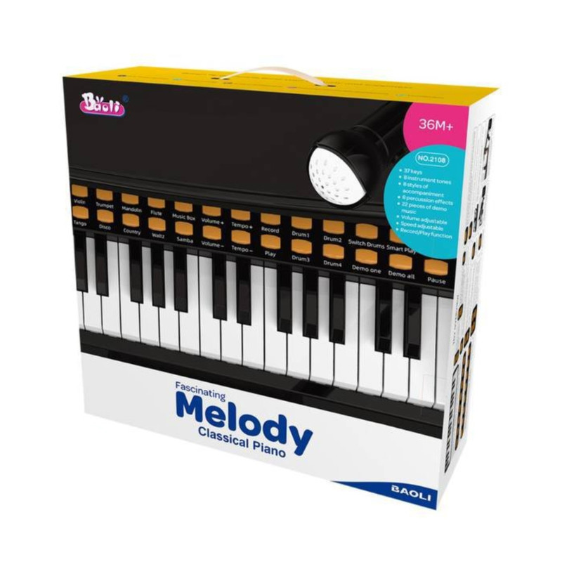 این پیانو یک وسیله کامل برای کودکانی که علاقمند به موسیقی هستند میباشد به وسیله آن کودک میتواند یک پیانو واقعی را در مقیاس کوچک شبیه سازی کند و بازی کند و سرگرم شود.