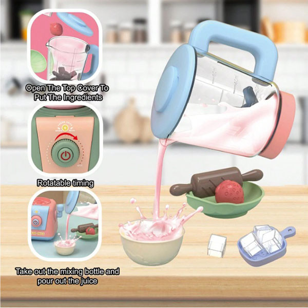 - بسیار با کیفیت و خوش ساخت - دارای چراغ و صدا - مانند یک مخلوط کن واقعی روشن میشود پره پلاستیکی میچرخد - همراه با بسته بندی بسیار زیبا مناسب هدیه