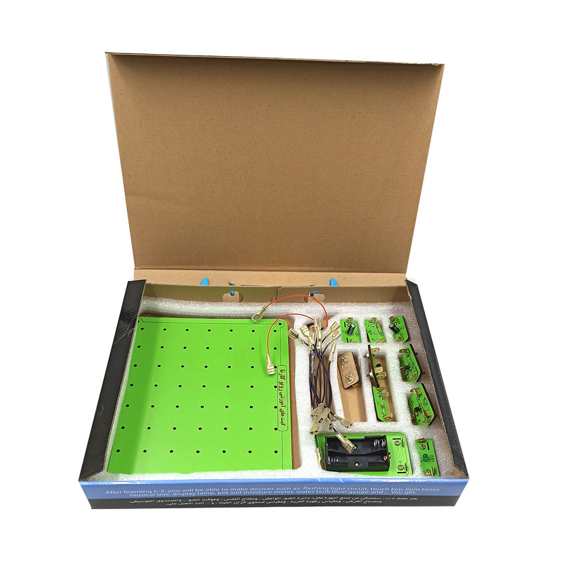 سایر توضیحات : با این یادگیری محصول می توانید توانایی ساخت وسایلی از قبیل : مدار چشمک زن، کلید لمسی، زمان سنج چراغ، جعبه موزیکال، چراغ سالن نمایش، رطوبت سنج خا گلدان، سطج سنج مخزن آب و .... طراحی کنید