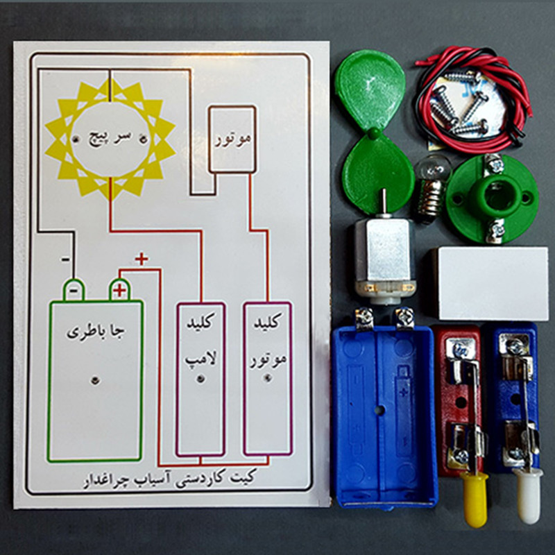 کیت کاردستی آسیاب چراغدار شامل سرپیچ، لامپ، موتور، پره، کلید، جاباتری، سیم، پیچ و تخته MDF است که مناسب کاردستی مدارس است. کیت کاردستی آسیاب چراغدار شامل تمامی قطعات لازم برای مدار آسیاب بادی و لامپ است. در این کیت یک لامپ و یک موتور هر کدام به یک کلید متصل میشود. از این کیت میتوانید در مدارس و موارد آموزشی استفاده کنید.