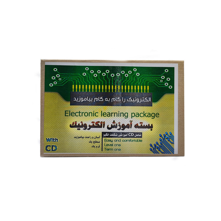 همهی والدین دوست دارند که فرزندانشان به یادگیری علاقهمند باشند. این سری بسته ها، با هدف علاقهمند سازی کودکان، با دنیای زیبای الکترونیک طراحی و تولید شدهاند. بسته آموزشی الکترونیک سطح پایه ترم اول، اولین بسته از این سری بسته های آموزشی الکترونیک میباشد که بهترین انتخاب، برای کودکانی است که میخواهند با دنیای زیبای الکترونیک آشنا شوند. همانطور که از نام بسته ها پیداست، این بسته ها در پایه ها و ترم های مختلف عرضه میشوند. در ترم اول از سطح اول آموزش های الکترونیک، ابتدا شما با تعدادی قطعه مانند برد بورد، موتور، لامپ، کلید، منبع تغذیه و.. آشنا میشوید. سپس با مفاهیم ولتاژ و جریان الکتریکی، سری و موازی کردن و.. آشنا میشوید. همچنین شما فرا میگیرید که مولتی متر چیست، و چگونه میتوان با مولتی متر جریان مدارات الکتریکی، و مقادیر دیگر آن ها را اندازهگیری کرد. این بسته شامل یک حلقه DVD حاوی یک ساعت ویدیو آموزشی به زبان فارسی (به همراه زیرنویس) میباشد. همچنین یک دفترچه آموزشی در بسته قرار دارد که تمامی آموزش ها بصورت تصویری و متنی در آن قرار داده شده است.