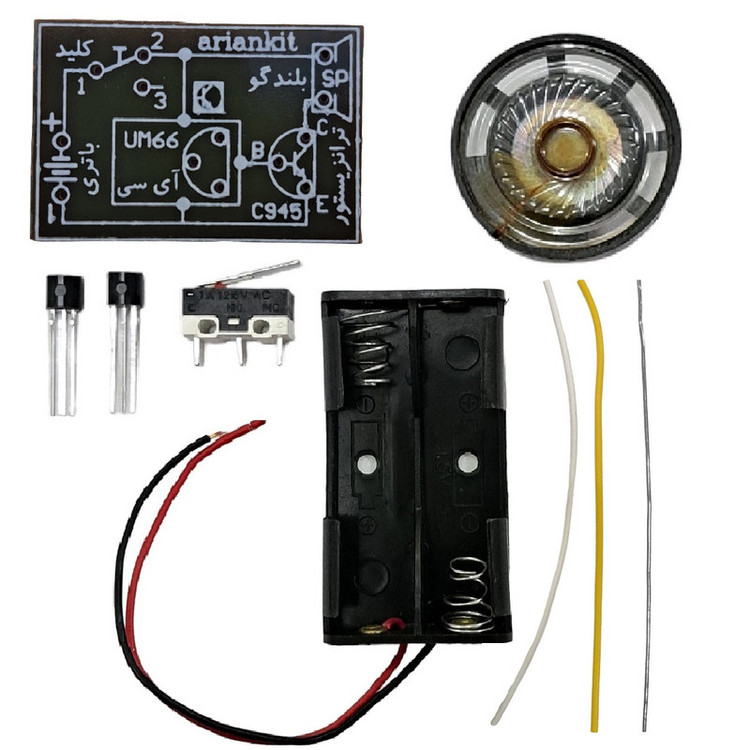 کیت آموزشی الکترونیک جعبه موزیکال ویژه مدارس با آی سی um66 (BT66xx) کاملا مطابق با کتاب کار و فن آوری سال هشتم طراحی شده و مناسب ساخت مدار آهنگ برای یک جعبه موزیکال است.این کیت یک مجموعه جذاب و کاربردی است که به دانش آموزان امکان می دهد تا با اصول و کاربردهای الکترونیک آشنا شوند و یک دستگاه پخش موسیقی ساده بسازند. این کیت شامل یک برد مدار چاپی با چاپ راهنمای فارسی مطابق با پودمان، یک عدد آی سی BT66 که حاوی یک قطعه موسیقی پیش فرض است، یک عدد ترانزیستور C945، یک عدد میکروسوییچ، یک عدد بلندگو و یک جاباتری است. دانش آموزان با استفاده از برگه راهنمای کیت، می توانند مراحل ساخت دستگاه را طی کنند و از شنیدن موسیقی خود لذت ببرند.