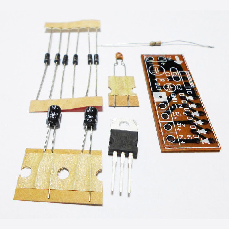 بسيار اتفاق می افتد که منبع تغذيه شما 24 الی 12 ولت باشد در حاليکه شما برای راهاندازی وسيله خود به ولتاژ پايينتر از اين ولتاژ احتياج داريد. به کمک اين کيت می توان ولتاژهای 24 الی 12 ولت را به ولتاژهای پايينتر (7.5، 9 و 10.5 و 12) تبديل کرد. قابل استفاده در اتومبیل