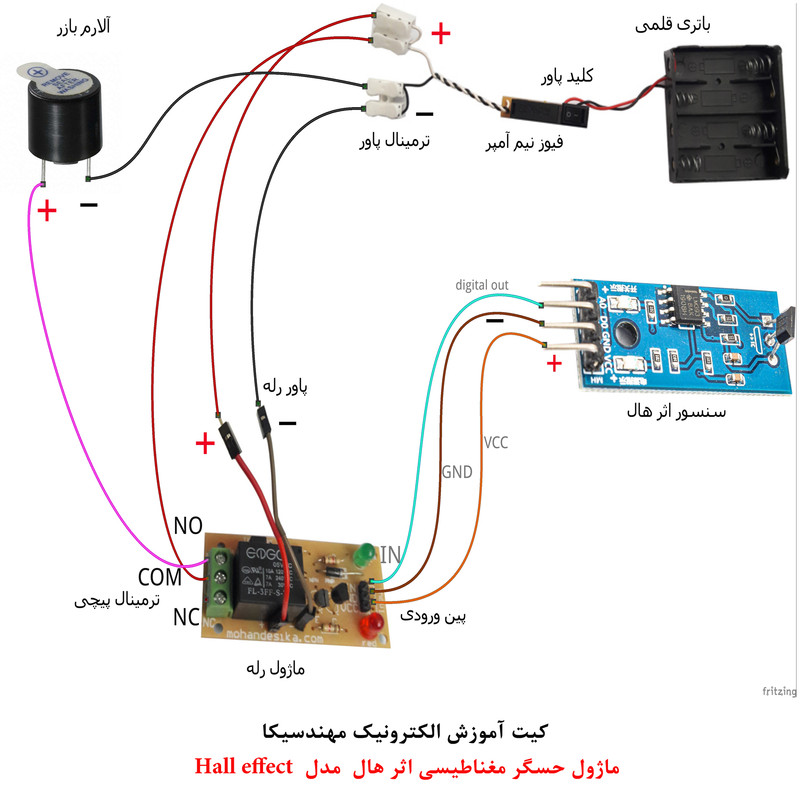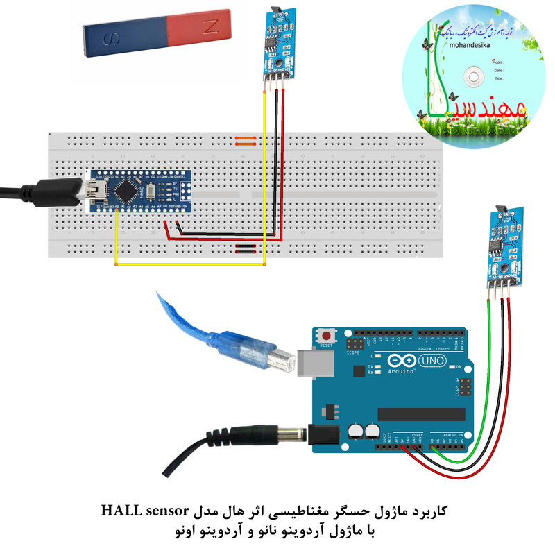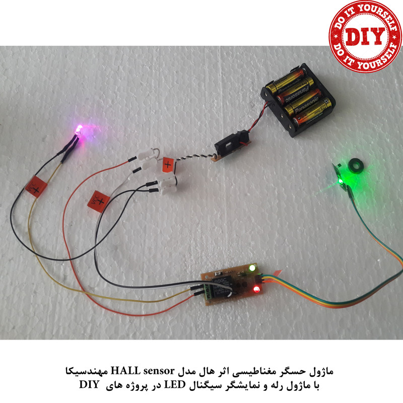 کیت آموزش الکترونیک دانش آموزی مهندسیکا یک کیت ساده سرگرمی،آموزشی است که دانش آموزان و نوجوانان را با ماژولها و مدارات الکترونیک و کنترلی آشنا میکند در این کیت هدف آشنایی و اجرای پروژهای کاربردی الکترونیکی بدون نیاز به لحیم کاری یا برنامه نویسی است .جهت انجام یک کار پژوهشی علمی و سرگرم کننده برای دانش آموزان است. ماژولهای لازم به صورت نمونه آزمایشگاهی به همراه فیلم آموزش جهت علاقه مندان ارائه میگردد که علاوه بر سرگرمی و لذت بردن از مدارات الکترونیک کاربرد آموزشی نیز دارد.سنسور اثر هال مبدلی است که خروجی آن بصورت ولتاژی است که در پاسخ به میدان مغناطیسی تغییر می کند. ولتاژ هال متناسب است با جریان الکتریکی (I) و میدان مغناطیسی (B).اندازه این ولتاژ در محدوده میکرو ولت می باشد. به همین خاطر در کاربردهای عملی حضور تقویت کننده ها ضروری می باشد.با اعمال میدان های مغناطیسی نسبتا بزرگ ولتاژ خروجی در محدوده چند میکروولت می باشد. در این ماژول برای ارتقا حساسیت سنسور و گرفتن خروجی مطلوب با بیشترین دقت و با حداقل خطای هیسترزیس از تقویت کننده، رگولاتور ولتاژ و مدارهای سوییچینگ منطقی استفاده شده است که راه اندازی آسان آن را توسط آردوینو یا رله میسر می سازد.اثر هال یک اثر الکترومغناطیسی است که توسط Edwin Hall در سال 1879 کشف شد. طبق این اثر اگر یک هادی در میدان مغناطیسی قرار گیرد ، از طرف میدان مغناطیسی نیرویی وارد بر الکترون های آن هادی می شود که موجب حرکت آن ها و بوجود آمدن اختلاف پتانسیل می گردد. توجه داشته باشید قطعات بصورت مجزا ارائه میشود و خریدار میتواند با استفاده از فایل آموزشی ارائه شده ، قطعات و ماژولها را مونتاژ نماید لذا ارائه تصویر وعکس کیت مونتاژ شده در فروشگاه جهت راهنمایی خریداران است مونتاژ بصورت آزمایشگاهی مزایای زیادی برای کاربران دارد که در بردهای مدارچاپی امکان ندارد از جمله بازگشت و اصلاح مدار ویا استفاده از قطعات یا ماژولها در سایر طرحها و همچنین امکان مونتاژ و دمونتاژ مدار به دفعات، برای علاقه مندان این روش که بصورت آزمایشگاهی مدارات مونتاژ میشوند بهترین روش آموزشی در یادگیری است.این بسته به همراه DVD، آموزش مونتاژ مدار ارائه میگردد.جهت راه اندازی کیت چهار عدد باتری قلمی یک و نیم ولت استاندارد تهیه شود .کیت کاربرد سرگرمی آموزشی دارد .