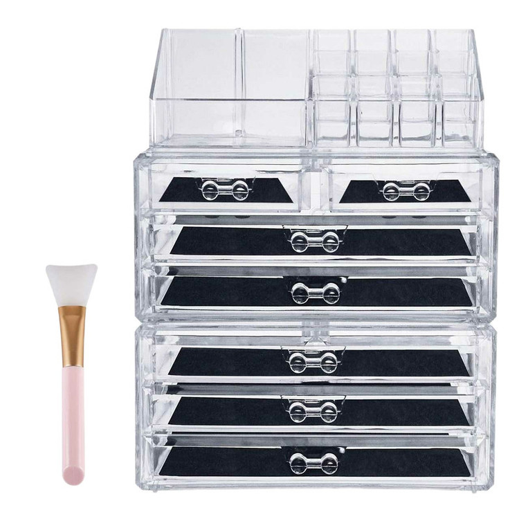 استند لوازم آرایشی 7 کشو مدل badonya 133 از جنس اکرولیک شفاف ساخته شده و قابل شستشو می باشد. ارتفاع هر کشو 3 سانتی متر می باشد. به همراه این استند یک عدد قلم ماسک می باشد که مناسب پخش انواع ماسک می باشد.
