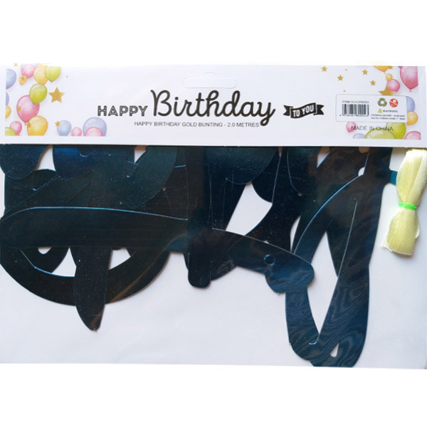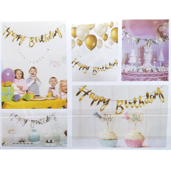 این محصول شامل یک ریسه تولد با نوشتار Happy Birthday و بسیار مرغوب و وارداتی از کشور چین با فونت زیبا و به هم پیوسته انگلیسی و حروف براق و متالیک می باشد.این ریسه از نوع ریسه های افقیست که پس از اتصال به دیوار یا سطوح دیگر می تواند یکی از زیباترین و مناسبترین و ارزانترین تزیینات برای جشن های تولد باشد که با فونت خاص و زیبا و همچنین درخشش و تلالو و منحصر به فرد بودن خود تریینی چشم نواز برای جشنهاست که میتوان با استفاده از آن عکسهای زیبایی از مراسم تهیه نمود و خاطرات و لحظات شاد و به یاد ماندنی آفرید.