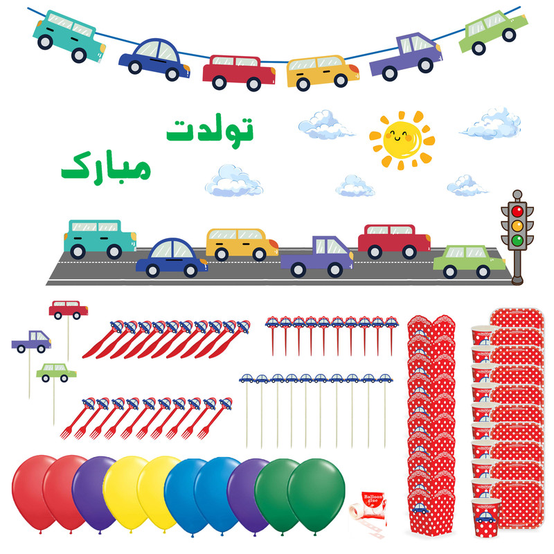 مجموعه ۱۰۰ عددی تم تولد برند تمساح طرح ماشین شامل یک ریسه 6 تکه، طرح دیوارکوب ۱۰ تکه، ۳ عدد تاپر کیک، ۱۰ عدد پیشدستی، ۱۰ عدد لیوان، ۱۰ عدد ظرف پاپکورن، ۱۰ عدد تاپر کاپ کیک، ۱۰ عدد تاپر ظرف پاپکورن، ۱۰ عدد کارد پذیرایی، ۱۰ عدد چنگال پذیرایی، ۱۰ عدد بادکنک، ۱ بسته کامل چسب بادکنک می باشد. این مجموعه در ۲ رنگ سرویس پذیرایی آبی و قرمز قابل انتخاب بوده و مطابق تصویر در جعبه کارتنی عرضه می گردد.