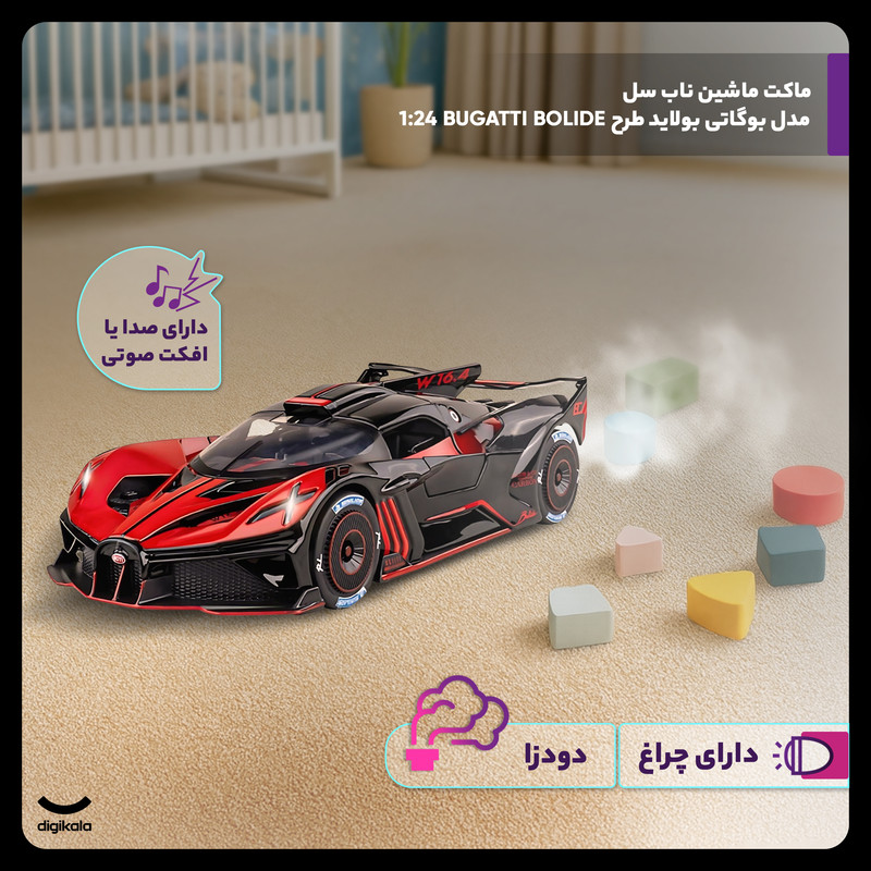 ماکت ماشین ناب سل مدل بوگاتی بولاید فلزی دودزا طرح BUGATTI BOLIDE 1:24