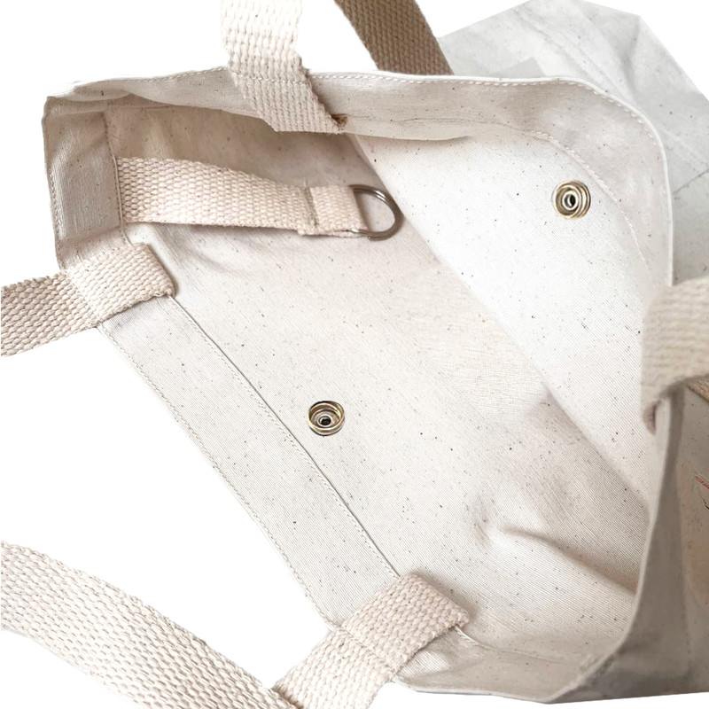 این کیف دستی با پارچه پنبه ای دوخته شده است و شامل دو جیب بزرگ بیرونی ، آویز جای سوئیچی در داخل و همچنین دگمه استیل ضد زنگ می باشد.