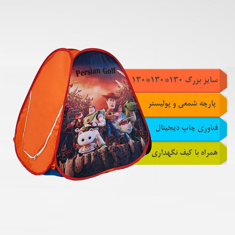 چادر کودک یکی از بهترین وسیله های بازی برای کودکان می باشد و آن هارا ساعت ها به بازی و سرگرمی مشغول میکند . چادر های کودک گروه تولیدی پرشین گلف در طرح و رنگ متنوع و بسیار جذاب تولید شده تا دنیای کودکان را زیبا تر کند . برای کودکان از نظر ذهنی بسیار مشغول کننده و باعث افزایش خلاقیت ، شادابی و اعتماد به نفس می شود. از منظر تربیتی می توان کودکان را به حفظ نظم ، پاکیزگی و مسئولیت پذیری تشویق کرد. این محصول با بهره گیری از فناوری چاپ دیجیتال ، استفاده از پارچه مرغوب شمعی و پولیستر و فنر های مستحکم تهیه شده است . محیط داخل چادر محلی مناسب برای اسباب بازی های کودکان می باشد این محصول با ظاهری زیبا دارای یک درب و پنجره می باشد و همچنین به راحتی در تمامی فضاهای باز و بسته قابل استفاده است همراه این چادر کودک یک عدد کیف برای حمل و نگهداری تقدیم عزیزان می شود.