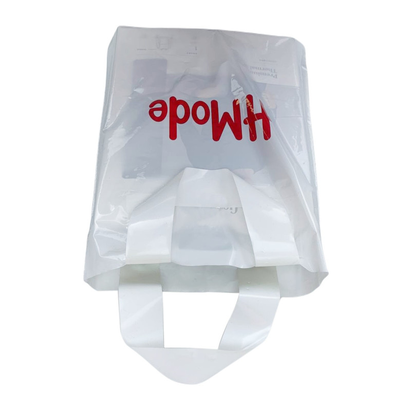 بسته ۵۰ عددی کیسه خرید اچ مد در ابعاد 28x23 سانتی متر یک پلاستیک دسته دار بسیار نرم با دسته های مقاوم برای استفاده روزمره است. این کیسه دسته دار زیبا و شیک دارای رنگ سفید و چاپ قرمز و دسته های همرنگ میباشد. چه برای استفاده در فروشگاه های فروش لباس و غیره از آن استفاده نمایید و چه جهت استفاده شخصی برای قراردادن وسایل شخصی مورد استفاده روزانه، این محصول به دلیل نرمی زیاد، استحکام بالا و ابعاد مفید آن حتما کارایی بسیار زیادی برای شما خواهد داشت.
