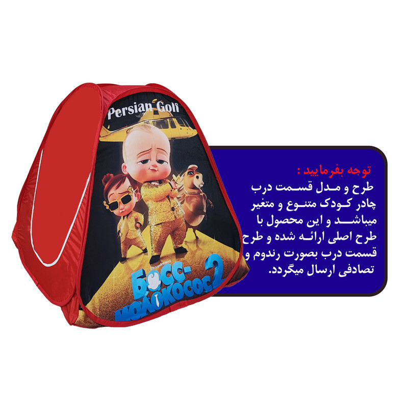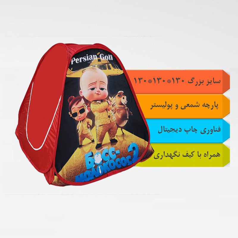 چادر کودک یکی از بهترین وسیله های بازی برای کودکان می باشد و آن هارا ساعت ها به بازی و سرگرمی مشغول میکند . چادر های کودک گروه تولیدی پرشین گلف در رنگ متنوع و بسیار جذاب تولید شده تا دنیای کودکان را زیبا تر کند . برای کودکان از نظر ذهنی بسیار مشغول کننده و باعث افزایش خلاقیت ، شادابی و اعتماد به نفس می شود. از منظر تربیتی می توان کودکان را به حفظ نظم ، پاکیزگی و مسئولیت پذیری تشویق کرد. این محصول با بهره گیری از فناوری چاپ دیجیتال ، استفاده از پارچه مرغوب شمعی و پولیستر و فنر های مستحکم تهیه شده است . محیط داخل چادر محلی مناسب برای اسباب بازی های کودکان می باشد این محصول با ظاهری زیبا دارای یک درب و پنجره می باشد و همچنین به راحتی در تمامی فضاهای باز و بسته قابل استفاده است همراه این چادر کودک یک عدد کیف برای حمل و نگهداری تقدیم عزیزان می شود.