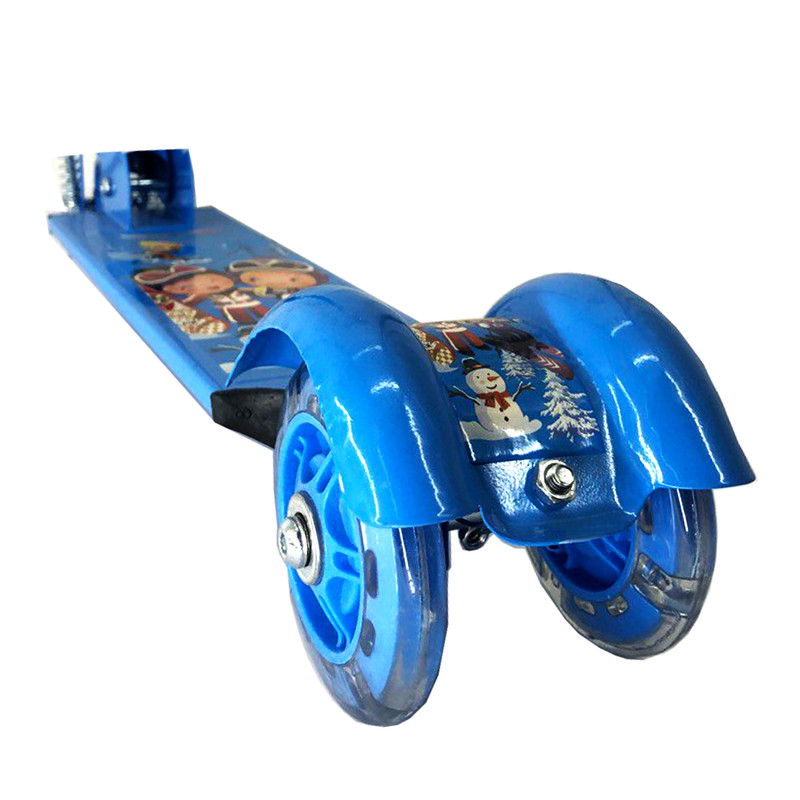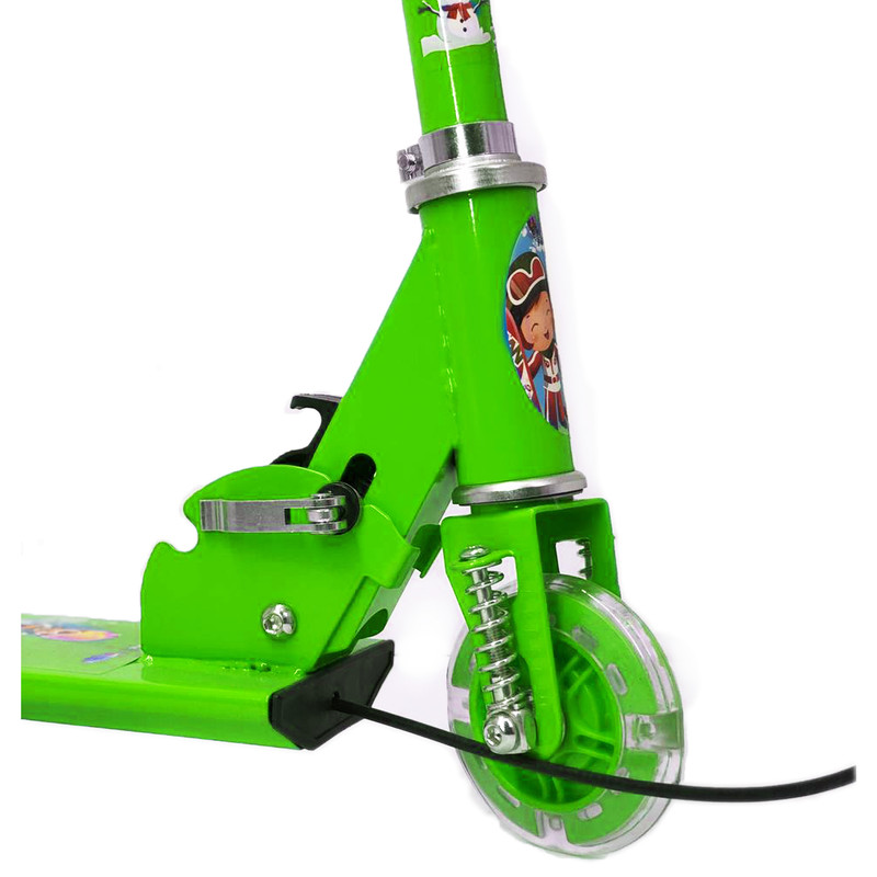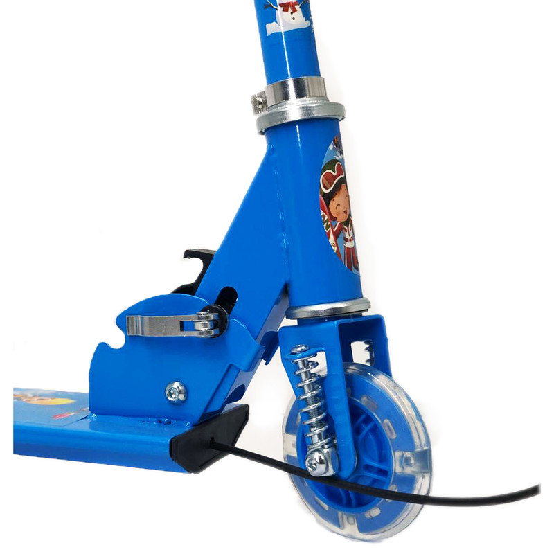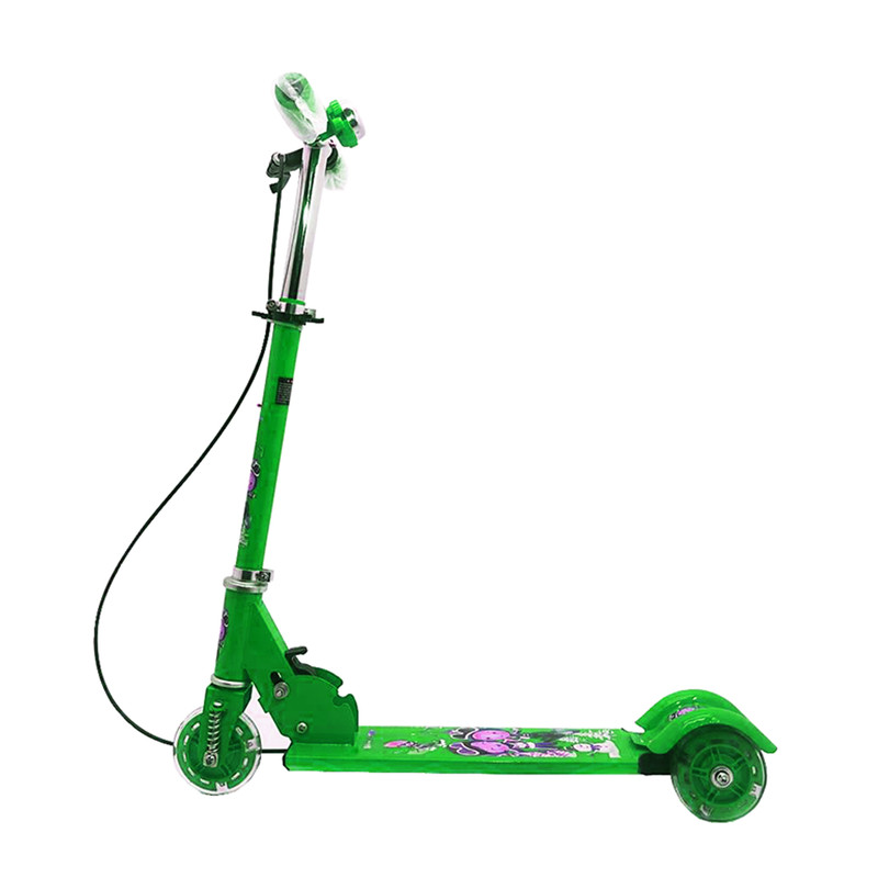 اسکوتر فانتزی کودکانه تاشو دارای یک چرخ در جلو و دو چرخ در عقب که در ان لامپ تزئینی در حین حرکت وجود دارد برای سرگرم شدن بیشتر کودکان کار گذاشته شده است.قطر چرخ های این اسکوتر 9 سانتی متر است.قابلیت تنظیم فرمان در سه سایز.دارای ترمز دوگانه یکی پدالی و یکی دستی .دارای زنگ دستی روی فرمان.دستگیره های فومی برای جلوگیری از تعریق دست فرزند شما.در چرخ جلو دوعدد کمک فنر وجود دارد که میتواند ضربه گیر باشد.