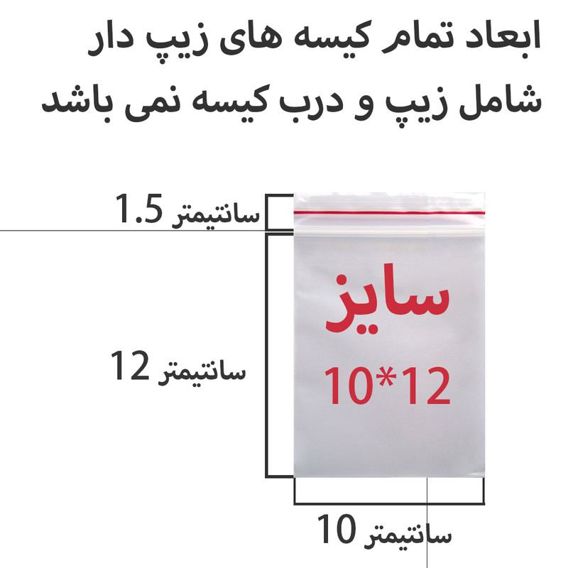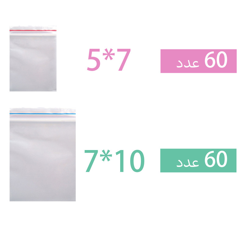 بسته شامل 60 عدد کیسه زیپ دار به ابعاد 5*7 و 60 عدد به ابعاد 7*10 سانتیمتر مجموعا 120 عدد