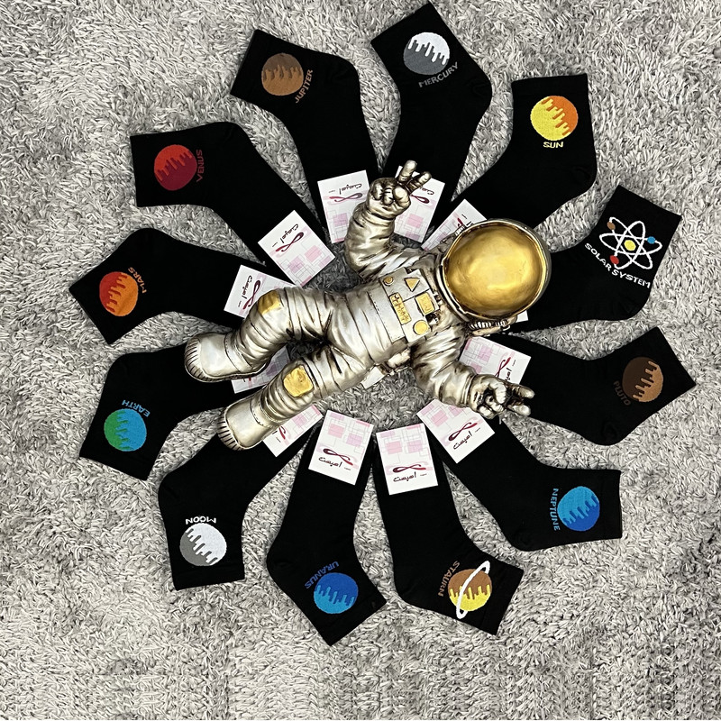 بسته 12 عددی جوراب ساق کوتاه نخی طرح سیارات منظومه شمسی