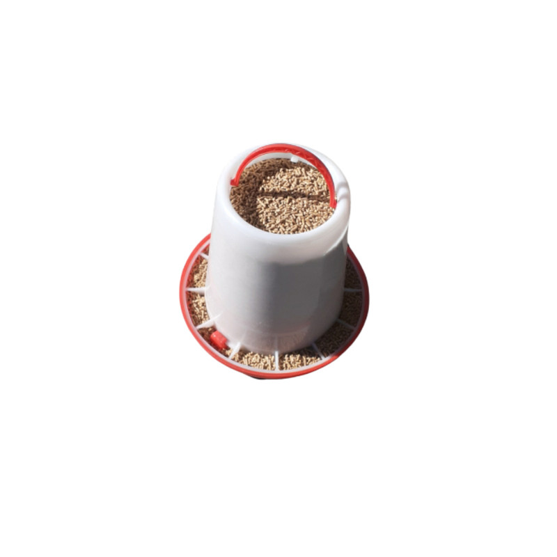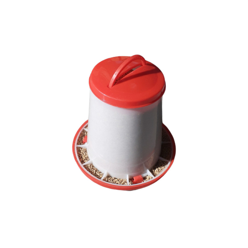 دانخوری قفلی دسته دار شامل دو تکه ظرف دسته دار و کفی بشقابی می باشد. این قطعات از پلاستیک با کیفیت پلی پروپیلن ساخته شده است. این محصول از کیفت عالی و ماندگاری ایده آلی برخوردار میباشد. گنجایش ظرف این دانخوری 4 کیلو است و از آن می توان برای تغذیه جوجه های مختلف در خانه استفاده کرد . مقدار دان در این محصول به اندازه استاندارد و کافی در اختیار طیور قرار میگیرد. همچنین به دلیل ساختار استاندارد این دانخوری ، غذای طیور از داخل این محصول به بیرون ریخته نمی شود. این محصول باید بصورت دستی پر شود. ولی می توان از این طریق در مصرف دان مورد نیاز طیور ، صرفه جویی کرد. جابجایی این دانخوری به وسیله دسته آن در محل خانه و نگه داری جوجه راحت می باشد دانخوری قفلی دسته دار به آسانی قابل شست و شو است.